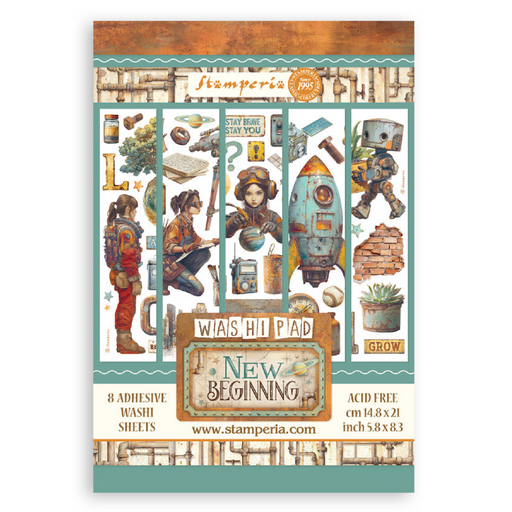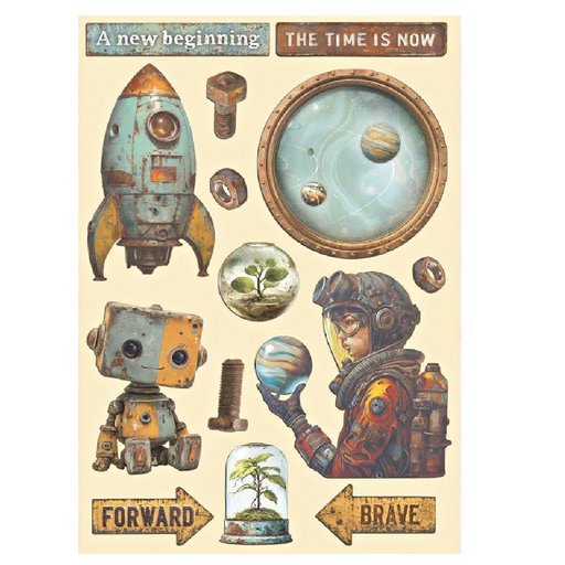 Stamperia A New Beginning Rub-On Transfers - Assorted Pack this pad includes 6 pages 8 x 9-inch transfer sheets Includes images like Earth, luggag...