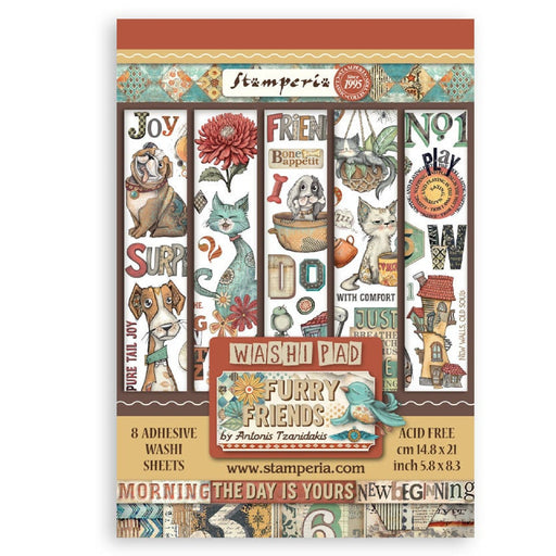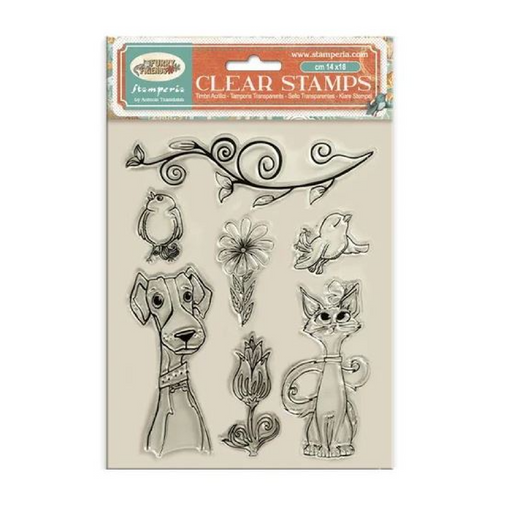 Stamperia Furry Friends Collection by Antonis Tzanidakis .This 5.5 x 7-inch clear acrylic stamp set includes 7 pieces, featuring an adorable cat an...