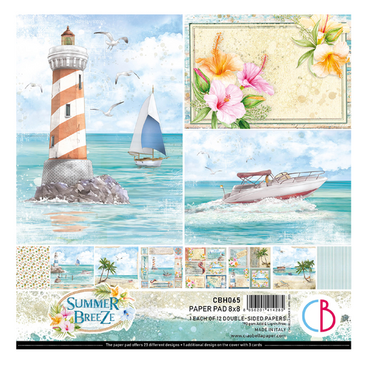 Summer Breeze paper set by Ciao Bella. • This package contains 1 each of 12 double-sided printed pages• Size 8x8 inches (20.3cm x 20.3cm)• 23 desig...