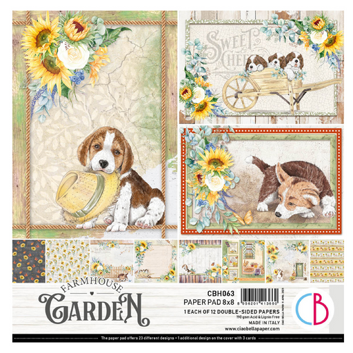 Farmhouse garden paper set by Ciao Bella. • This package contains 1 each of 12 double-sided printed pages• Size 8x8 inches (20.3cm x 20.3cm)• 23 de...