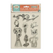 Stamperia Furry Friends Collection by Antonis Tzanidakis .This 5.5 x 7-inch clear acrylic stamp set includes 7 pieces, featuring an adorable cat and dog, birds, a leafy vine, and stemmed flowers perfect for adding a playful touch to your creative projects.