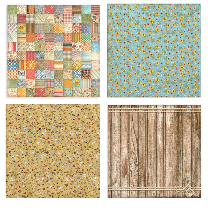 Stamperia Sunflower Art fabric pack includes 4 polyester fabrics